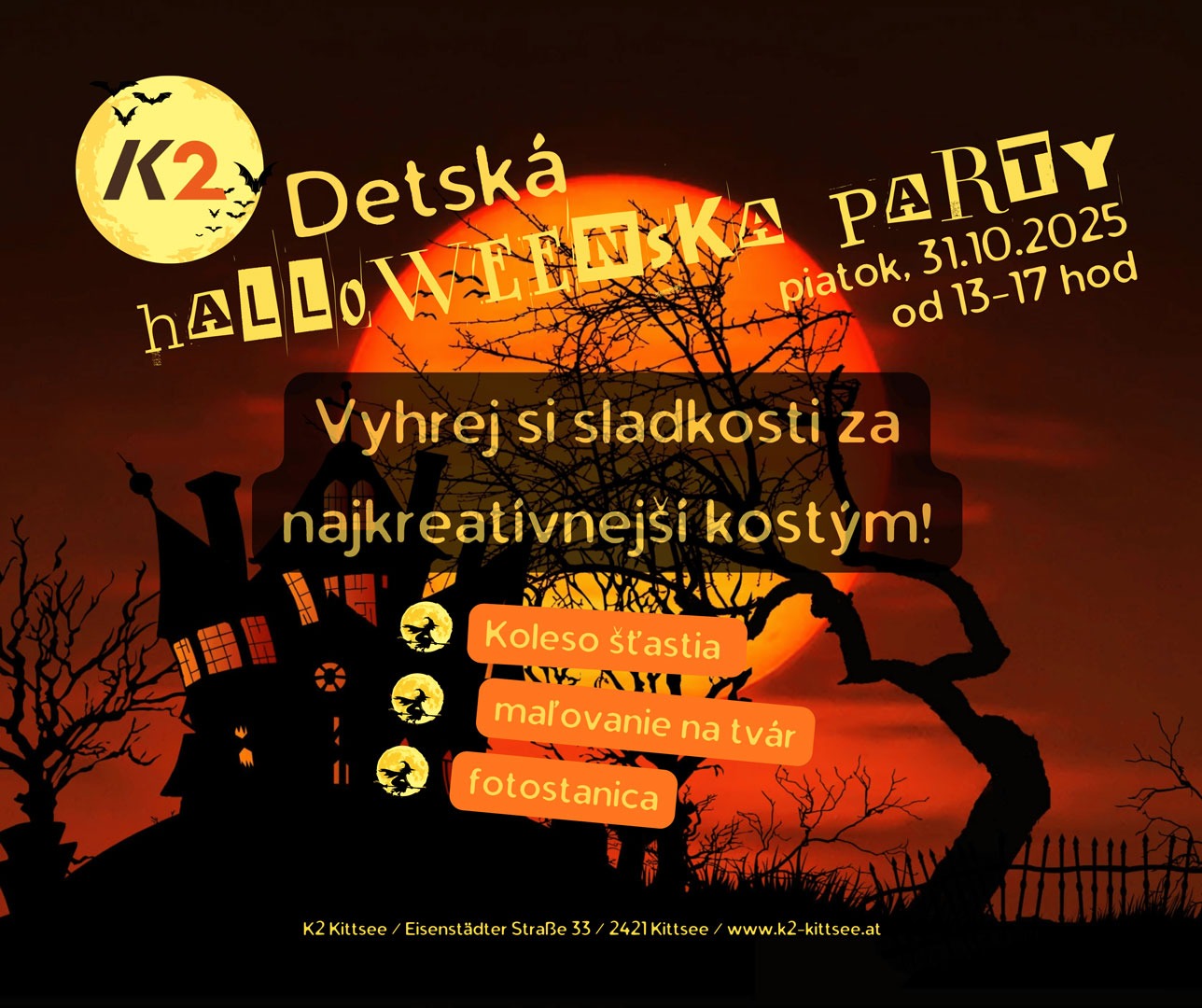 Vyhrej si sladkosti za najkreatívnejší kostým! Koleso šťastia – Mal’ovanie na tvár – Fotostanica.